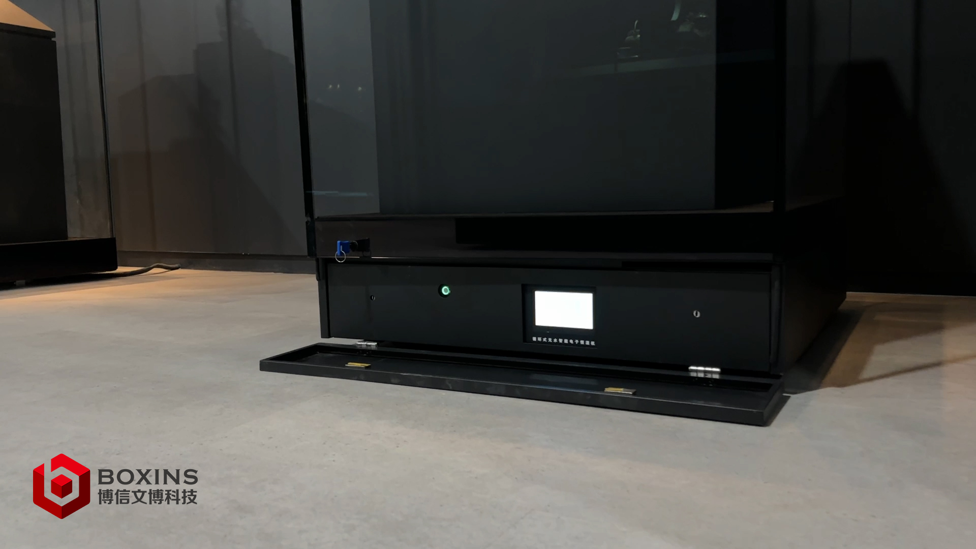 为避免设备破坏展陈美感,博信对恒温恒湿机进行全隐藏式视觉处理:展柜外部无任何设备接口、管线裸露,设备运行区域采用